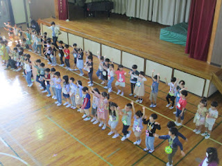 5年生 かっこいいラジオ体操 ちょっと小ネタを入れてから・・・。他の学年の子も自然と一緒に。